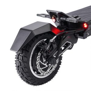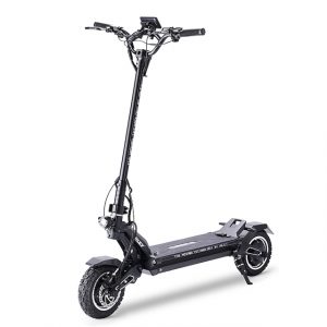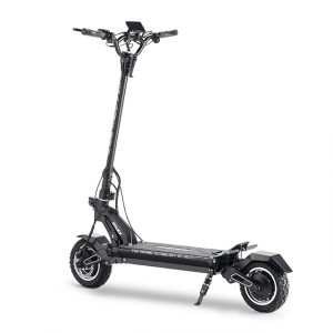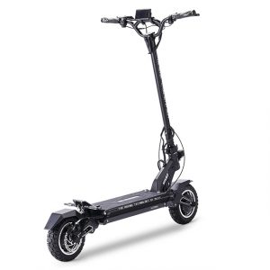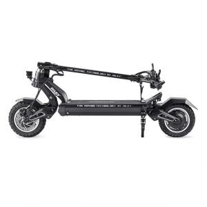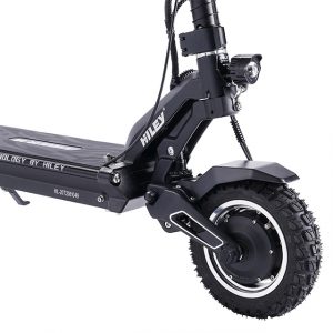 This is the Tiger 10 GT. Considered the top model in Hiley’s line, the Tiger 10 GT is packed full of features. Starting with its powerful dual motors, amassing a combined 2800W, it propels the scooter up to nearly 45 mph. Doing this on a solid, but light aluminum alloy frame, the Tiger 10 GT is incredibly stable.